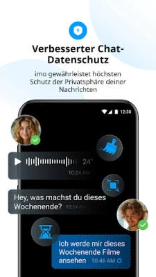 Bei imo steht Ihre digitale Sicherheit an erster Stelle. Durch fortschrittliche Funktionen wie die Zeitmaschine, selbstlöschende Nachrichten, einen dedizierten Datenschutz-Chat und eine robuste Ende-zu-Ende-Verschlüsselung sind Ihre Gespräche maximal geschützt. Blockieren Sie das Erstellen von Screenshots oder das Kopieren sensibler Inhalte und legen Sie individuelle Timer für Nachrichten fest. Um die Kommunikation über Sprachgrenzen hinweg zu erleichtern, integriert imo eine nahtlose Sofortübersetzung für Textnachrichten. Für gemeinschaftliche Unterhaltung und Austausch lädt der imo VoiceClub ein: Erstellen oder treten Sie Räumen bei, um an lebhaften Talentshows, Talkshows, Wettbewerben oder einfach entspannten Treffen teilzunehmen und besondere Momente zu teilen.