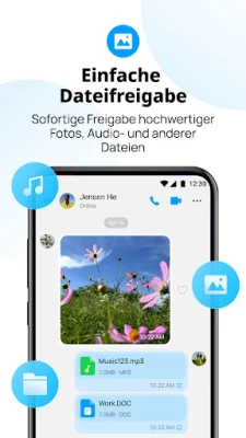 Über reine Sprachanrufe hinaus bietet imo einen umfassenden Messenger. Teilen Sie Text- und Sprachnachrichten, Fotos, Videos und Dokumente jeder Art – von Geschäftsberichten bis zu Musikdateien – in Originalqualität. Ihre gesamte Konversation, inklusive aller Medien und Dateien, wird sicher in der imo-Cloud synchronisiert. Dies schafft nicht nur wertvollen Speicherplatz auf Ihrem Gerät, sondern stellt auch sicher, dass Ihre Erinnerungen und wichtigen Informationen stets zugänglich sind und effizient verwaltet werden können.