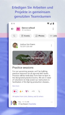 Erleben Sie nahtlose Kommunikation und mühelose Zusammenarbeit mit Microsoft Teams – Ihrer zentralen Plattform für alle Verbindungen. Ob mit Familie, Freunden, Kommunitäten oder Kollegen, treffen Sie sich sicher und produktiv. Das frühere Skype-Erlebnis setzt sich hier nahtlos fort, sodass Sie Chats, Anrufe und Kontakte unkompliziert fortführen können. Starten Sie im Handumdrehen eine Besprechung, teilen Sie einen Link oder eine Kalendereinladung und bringen Sie alle zusammen. Führen Sie Einzelgespräche oder treten Sie in lebhafte Gruppenchats ein, nutzen Sie @-Erwähnungen, um spezifische Aufmerksamkeit zu lenken, und drücken Sie sich mit einer Vielfalt an GIFs, Emojis und Nachrichtenanimationen aus. Halten Sie Ihre Unterhaltungen durch spezielle Kanäle und Teams thematisch organisiert und verwandeln Sie Chats bei Bedarf sofort in Video- oder Audioanrufe.