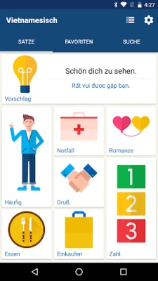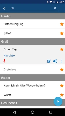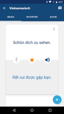 Tauchen Sie ein in eine sorgfältig zusammengestellte Sammlung der meistgenutzten vietnamesischen Sätze und essenziellen Vokabeln, damit Sie von Anfang an das lernen, was wirklich relevant ist. Sprechenden Papagei legt größten Wert auf authentische Aussprache. Lauschen Sie den klaren Stimmen muttersprachlicher Sprecher und entwickeln Sie ein feines Gefühl für die Melodie und Tonalität der Sprache. Einzigartig ist die Möglichkeit, Ihre eigene Aussprache aufzuzeichnen und diese direkt mit den Originalaufnahmen zu vergleichen – ein unschätzbares Werkzeug, um Ihre Artikulation präzise zu verfeinern. Verwalten Sie Ihre Favoriten bequem und finden Sie dank der intuitiven Stichwortsuche blitzschnell genau die Wendungen, die Sie gerade benötigen.