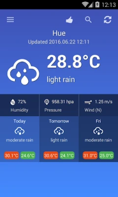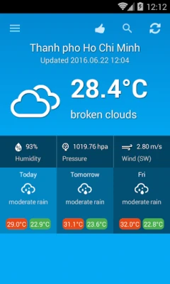 Planen Sie Ihre Aktivitäten mit Zuversicht dank der 3-Tages-Vorhersage, die Ihnen einen Ausblick auf die kommenden Wetterentwicklungen gibt. Das Hinzufügen Ihrer bevorzugten Städte zur Startseite ist kinderleicht, sodass Sie Ihre wichtigsten Orte immer im Blick haben. Besonders nützlich für internationale Reisende ist die mehrsprachige Unterstützung der Städtenamen, was die Navigation und Nutzung der Anwendung während Ihrer Reise durch Vietnam erheblich vereinfacht. Erleben Sie eine nahtlose Wettererfahrung, die speziell auf die Bedürfnisse von Reisenden und Bewohnern zugeschnitten ist und Ihnen hilft, das Beste aus Ihrer Zeit in Vietnam zu machen.