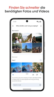 Verabschieden Sie sich vom Chaos in Ihrer Galerie. Google Fotos revolutioniert die Organisation, indem es Duplikate und ähnliche Aufnahmen automatisch in Fotostapeln zusammenfasst und intelligente Ordner für Screenshots, Dokumente oder persönliche Alben anlegt. Finden Sie jedes Bild im Nu mit der leistungsstarken, KI-gestützten Suche – beschreiben Sie einfach, wonach Sie suchen, wie "Alina und ich lachen" oder "Kajakfahren auf einem See". Zudem verwandeln Sie Ihre Fotos mit intuitiven Bearbeitungstools mühelos in Meisterwerke: Entfernen Sie unerwünschte Objekte mit dem Magischen Radierer, schärfen Sie unscharfe Bilder mit der Funktion "Scharfzeichnen" oder optimieren Sie die Beleuchtung Ihrer Porträts mit der Porträtbeleuchtung. Vertrauliche Aufnahmen finden in einem gesicherten, durch Ihre Displaysperre geschützten Ordner einen diskreten Platz.