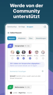 I Am Sober - Ich bin nüchtern ist mehr als ein Nüchternheitszähler. Die App hilft dir, neue Gewohnheiten zu entwickeln und bietet anhaltende Motivation durch eine Community Gleichgesinnter. Verfolge deine nüchternen Tage und teile Erfahrungen, um Tag für Tag nüchtern zu bleiben.