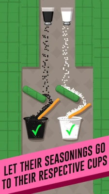 Im Zentrum des Spielerlebnisses von "Salt & Pepper, Don't mix em up" steht eine intuitive und dennoch tiefgründige Interaktion. Durch einfaches Berühren und Ziehen auf dem Bildschirm gestalten Sie individuelle Pfade. Ihre Aufgabe ist es, elegante Wege für das wandernde Salz und den umherirrenden Pfeffer zu zeichnen, um sie sicher zu ihren jeweiligen, farblich gekennzeichneten Bechern zu leiten. Jeder Strich ist entscheidend, jede Kurve muss präzise gesetzt werden, um eine perfekte Separation zu garantieren und die Komponenten makellos voneinander zu halten.