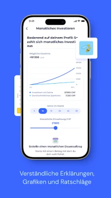 Noch nicht dabei? Selma transformiert Ihr Anlageerlebnis und macht den Vermögensaufbau zugänglich wie nie zuvor. Chatten Sie mit Selma, um einen individuellen Plan für Ihre Anlagen und Ihre Säule 3a zu erhalten, der perfekt auf Ihre aktuelle Lebens- und Finanzsituation zugeschnitten ist. Selma zeigt Ihnen nicht nur, wie Sie smart investieren, sondern auch, wie viel Sie beiseitelegen sollten und mit welchen Beträgen Sie den Start meistern. Die Eröffnung Ihres Anlagekontos inklusive sicherer Video-Identifikation sowie die mühelose Integration Ihrer Säule 3a erfolgt komplett digital. Starten Sie bereits ab 2'000 CHF mit einem globalen Investmentplan oder ab 500 CHF für Ihre Säule 3a.