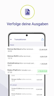 Behalten Sie stets den Überblick über Ihre Ausgaben und verwalten Sie Ihre Finanzen mit intuitiven Tools, die Klarheit schaffen. Das reibungslose Onboarding sorgt für einen schnellen Start, sodass Sie umgehend alle Funktionen nutzen können. Zudem vereinfacht die Studierendenwerk Mainz App den Prozess der Geldrückgabe und bietet eine einzigartige Möglichkeit, die Finanzen Ihrer Kinder sicher zu kontrollieren und deren Ausgaben im Blick zu behalten.