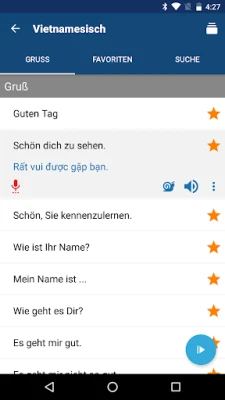 Tauchen Sie ein in eine sorgfältig zusammengestellte Sammlung der meistgenutzten vietnamesischen Sätze und essenziellen Vokabeln, damit Sie von Anfang an das lernen, was wirklich relevant ist. Sprechenden Papagei legt größten Wert auf authentische Aussprache. Lauschen Sie den klaren Stimmen muttersprachlicher Sprecher und entwickeln Sie ein feines Gefühl für die Melodie und Tonalität der Sprache. Einzigartig ist die Möglichkeit, Ihre eigene Aussprache aufzuzeichnen und diese direkt mit den Originalaufnahmen zu vergleichen – ein unschätzbares Werkzeug, um Ihre Artikulation präzise zu verfeinern. Verwalten Sie Ihre Favoriten bequem und finden Sie dank der intuitiven Stichwortsuche blitzschnell genau die Wendungen, die Sie gerade benötigen.